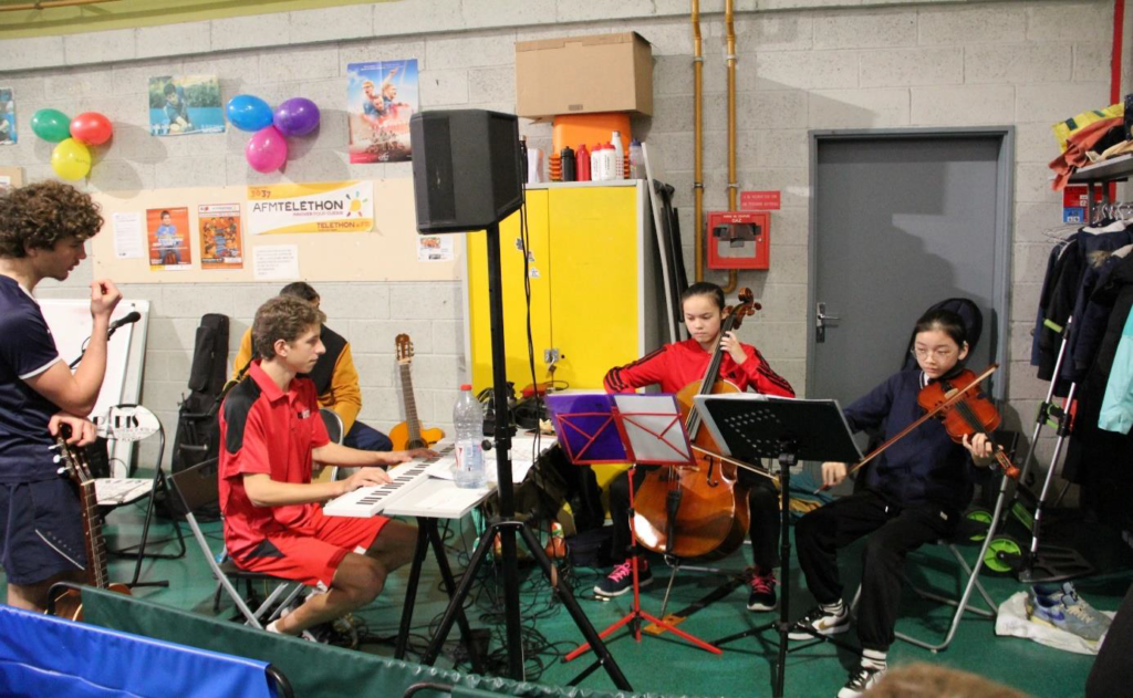 Cette année les participants ont eu le plaisir de taper la balle en musique. Tout d’abord grâce à quatre de nos jeunes pongistes, qui s’avèrent être également de véritables musiciens. Un grand bravo à Eva B.X. (au violoncelle), Milo M. (à la guitare), Robin Q. (au piano) et Amandine H. (au violon) pour leur talent musical et leur belle prestation.