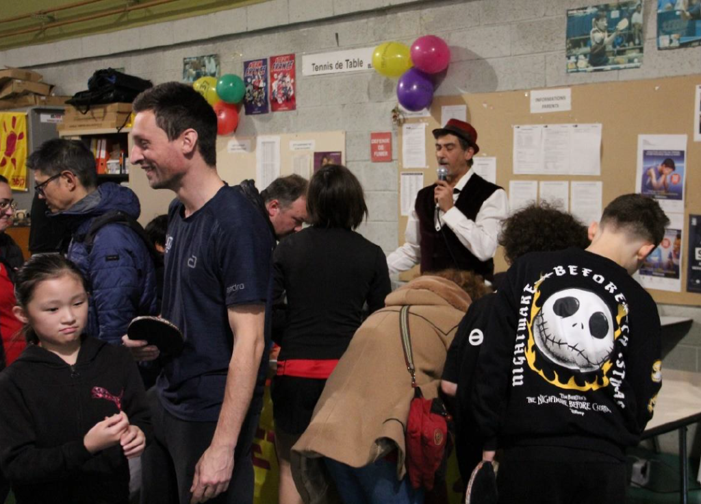 Il y avait foule dans notre gymnase, toutes les tables étaient occupées ! Mais le tournoi a tourné rond, grâce à Mattieu, Alban, Baptiste, Cyril et Noélia. Un grand merci tout particulier à Mattieu qui a assuré l’animation du tournoi tout au long de l’après-midi.