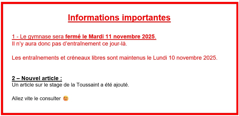 Les résultats sont affichés dans notre gymnase. Vous les trouverez également sur la page « FSGT Val de Marne – Jeunes » de l’onglet « Résultats » de notre site web.